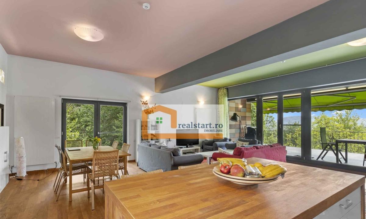 Va prezentam in exclusivitate o proprietate placuta in detalii utilizata in prezent ca si rezidenta de vacanta situata in localitatea Cornu in imediata vecinatate a orasului Campina 15 min cu masina Dintre avantajele acestei proprietati as mentiona - terenul generos de peste 6600 mp ofera un spatiu ideal pentru relaxare oferind multa intimitate intr-un cadru natural de exceptie - padure livada pe rod arbusti si vegetatie perene ce inconjoara proprietatea - terasa casei situata la parterul inalt cu acces direct din living este principalul punct de atractie al proprietatii fiind locul special al casei de unde poti admira o imagine panoramica a zonei view-ul nefiind opturat de vegetatie sau alte imobile - cladirea beneficiaza de finisaje exterioare de exceptie fatada ventilata fiind creata din placi ceramice termorezistente colorate care aduc un confort termic si fonic deosebit placarea la nivelul bazei cladirii demisol este efectuata cu caramida samota fapt ce asigura o buna optimizare privind transferul termic - cheltuielile de intretinere ale casei sunt mult optimizate neexistand pierderi termice intrucat inca din faza de proiect arhitectul casei a urmarit sa existe o buna izolatie termica a casei si optimizarea sistemului de incalzire al proprietatii radiatoare estetice din otel optim dimensionate si pozitionate centrala termica pe gaz in condensatie de capacitate mare - exista acces la toate utilitatile - canalizare - apa curenta - gaz - curent trifazic 380V - exista un sistem de supraveghere video performant 24/7 - zona de zi este bine delimitata de zona de seara dormitoarele principale ale proprietatii fiind pozitionate la parter si demisolul inalt iar la mansarda existand alte 2 dormitoare suplimentare cu geamuri de tip velux acces prin scara tip spirala - casa este construita pe un teren in panta pe varful unui deal astfel demisolul este la nivelul parterului dispunand de o inaltime normala a camerelor si cu toate geamurile de dimensiuni normale - existand o buna luminozitate naturala un confort fonic si termic foarte bun si o vedere spre curtea/livada proprietatii -inaltimea camerelor peste standard este completata de zone vitrate generoase cu geamuri termopan de calitate -in imediata vecinatate exista spa zone de sport magazine comerciale piata si multiple atractii turistice pentru petrecerea timpului liber - accesul pana la proprietate se poate face atat prin drum national cat si prin autostrada A3 neexistand ambuteiaje in trafic de asemenea exista si un acces bun catre mijloacele de transport in comun - strada pe care se afla proprietatea este linistita majoritatea caselor sunt nou-construite si vecinii si vecinatatile sunt de buna calitate