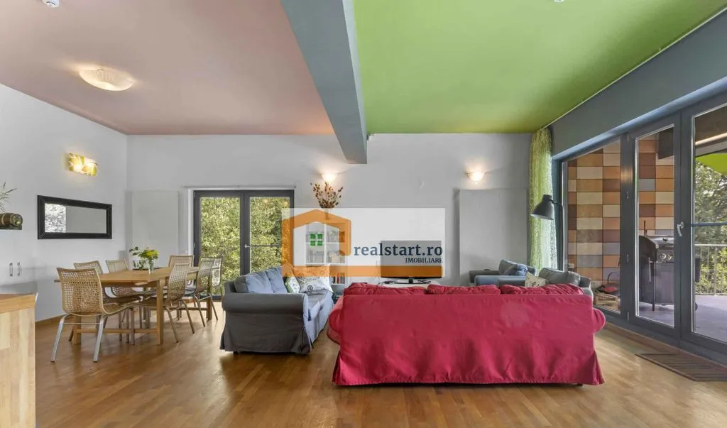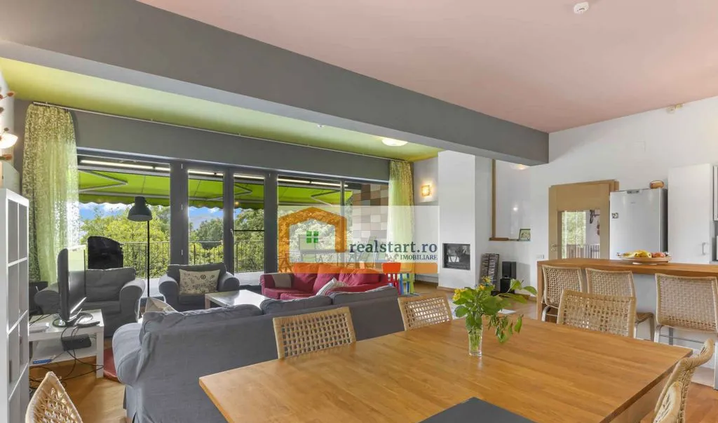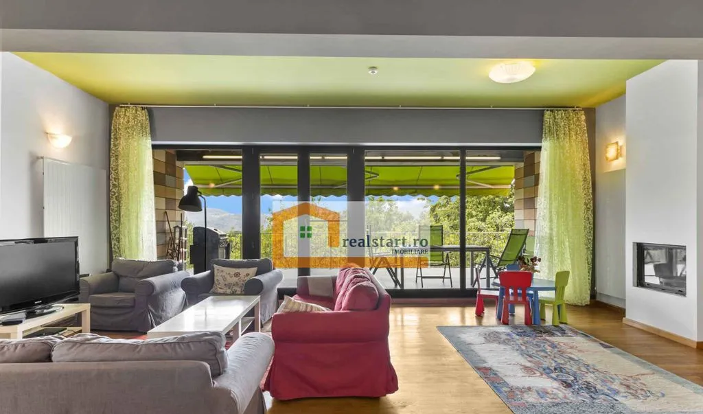 - terasa casei situata la parterul inalt, cu acces direct din living este principalul punct de atractie al proprietatii, fiind locul special al casei de unde poti admira o imagine panoramica a zonei, view-ul nefiind opturat de vegetatie sau alte imobile