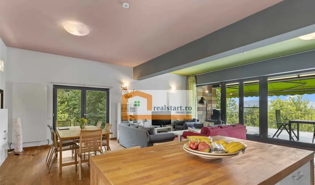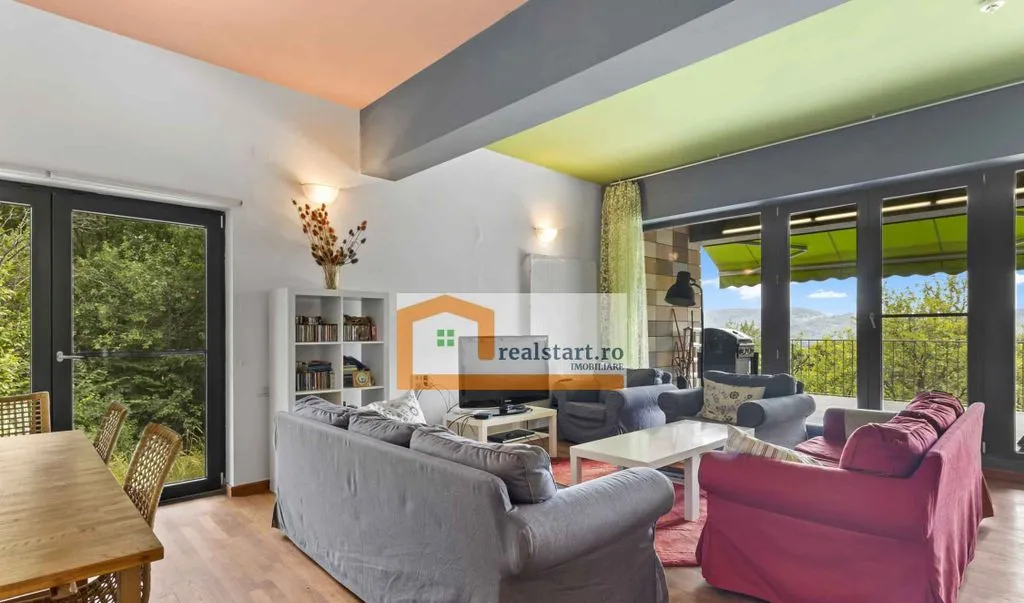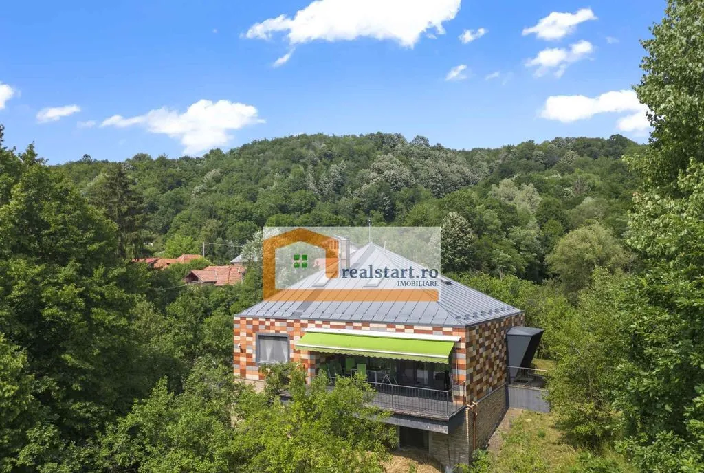 Inconjurata de padure, complet mobilata si utilata - Acces facil prin drum asfaltat - Pozitionare pe varful unui deal -Priveliste de exceptie din toate spatiile