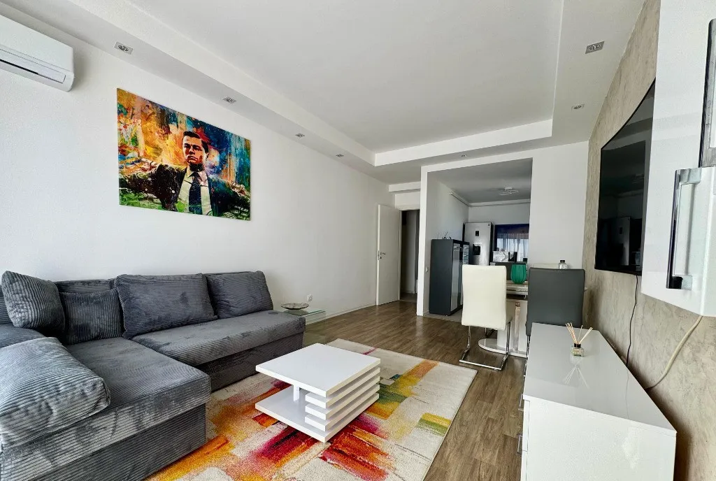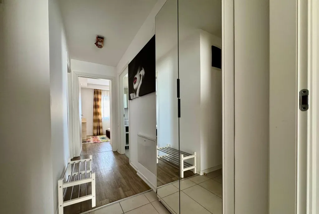 Are o suprafata utila de 65 mp + 1 balcon de 5 mp, 2 bai, mobilat si utilat, exact asa cum putem vedea in fotografii. Este situat la etajul 4/5, orientare cardinala spre Sud cu vedere superba spre piscina si lac.
