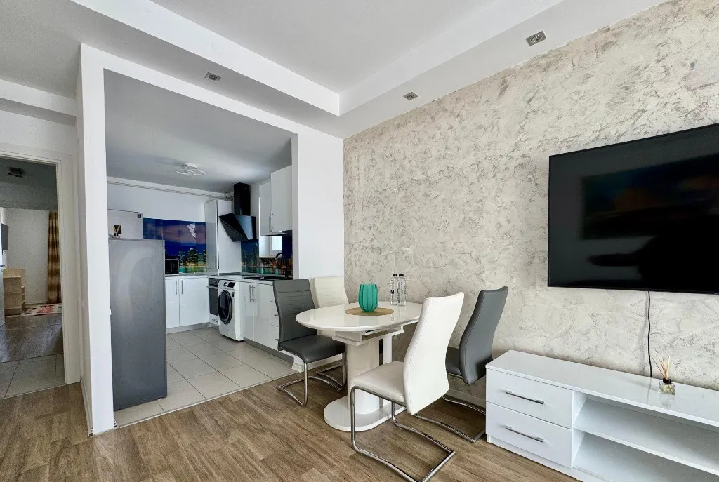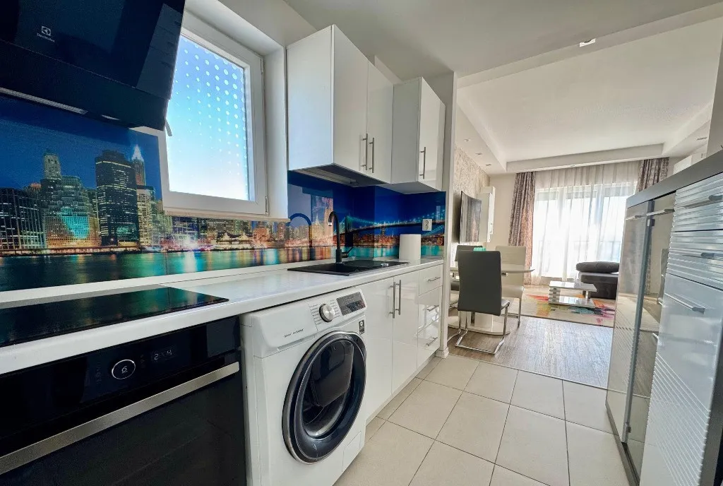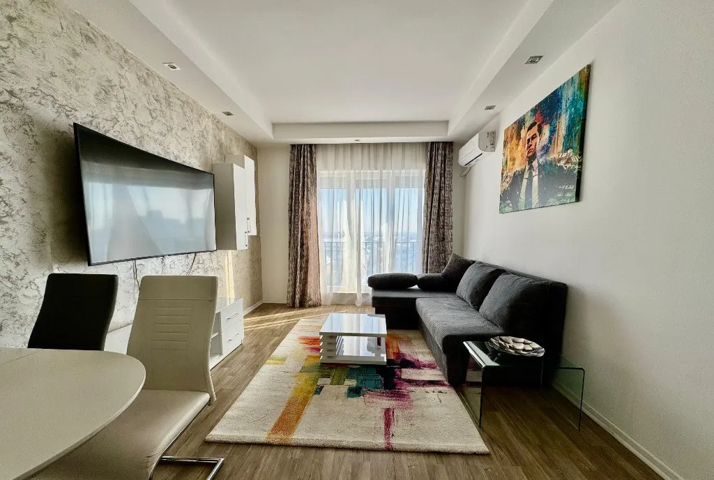 Va propunem spre vanzare un apartament de 3 camere, mobilat si utilat, cu vedere la piscina, in Complexul Rezidential Cosmopolis.