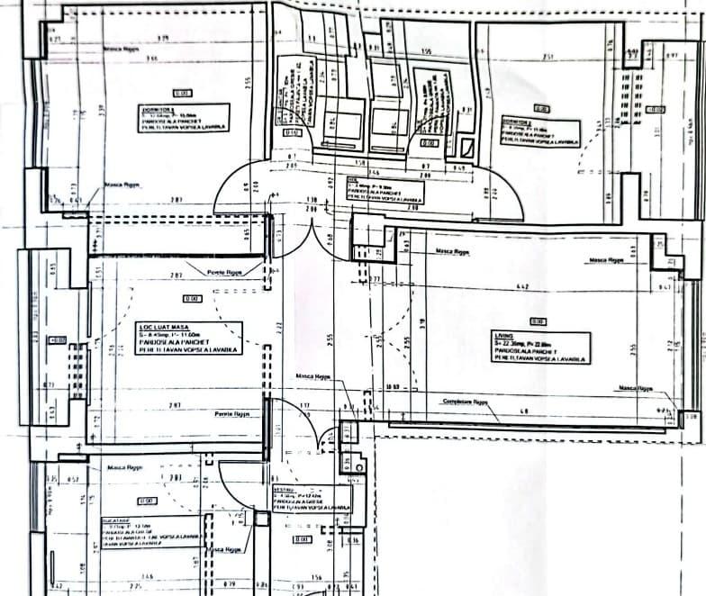 Apartamentul a fost modificat cu proiect si autorizatie avand acum un living camera de zi loc de luat masa foarte spatios aproape 40 mp si luminos cu geamuri pe ambele parti ale blocului bucataria - peste 10 mp un dormitor matrimonial cu dressing si un dormitor mic cu logia inclusa in suprafata utila Vezi schita atasata