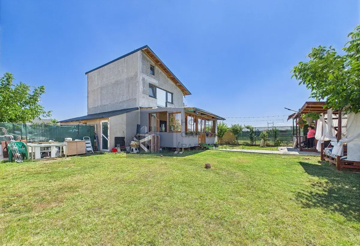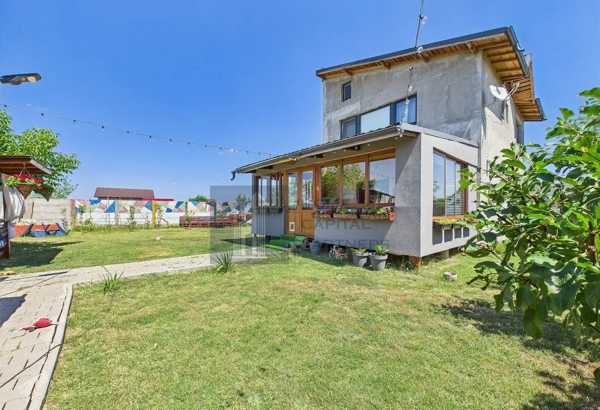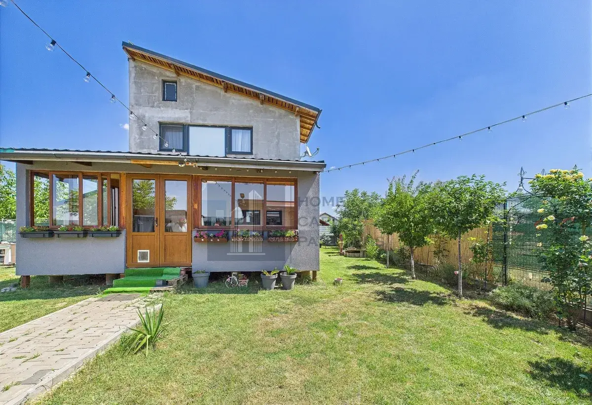 Proprietatea beneficiaza de aer conditionat, centrala electrica, centrala pe peleti si panouri solare, oferind costuri reduse si independenta energetica. Curtea generoasa poate fi amenajata ca gradina, zona de relaxare sau spatiu de joaca pentru copii.