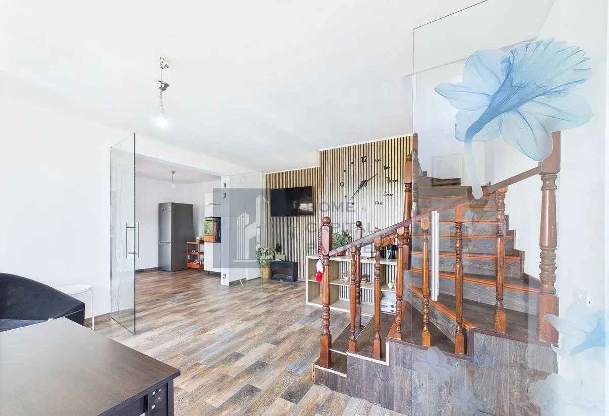 Parterul include livingul spatios, locul de luat masa, bucataria si o baie de serviciu, in timp ce etajul este rezervat zonei de noapte, cu doua dormitoare luminoase si doua bai. Finisajele sunt de calitate, iar fiecare spatiu a fost gandit pentru confortul zilnic.