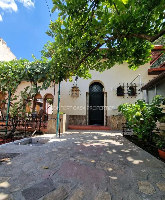 Aceasta casa in stil maur, cu arcade, coloane decorative si fier forjat lucrat manual (usi si grilaje), imbina eleganta arhitecturii mediteraneene cu confortul urban modern. Terasa si gradina privata, perfecte pentru relaxare. Garaj + 2 locuri de parcare exterior.