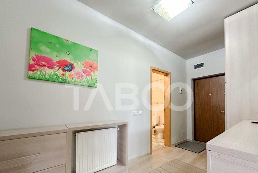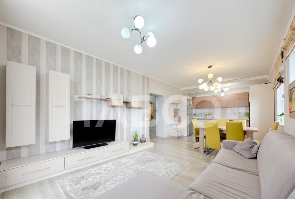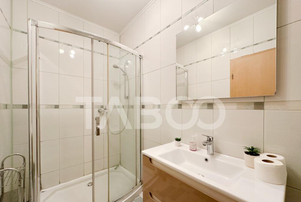 Apartament 2 camere de vanzare decomandat 59 mp zona Doamna Stanca Sibiu Avantaje majore ale acestui apartament nbsp bull Locuri de parcare in curte cu acces privat bull Pretabil investitie sigura TABOO Imobiliare propune un apartament de vanzare cu 2 camere decomandat situat in localitatea Sibiu zona Doamna Stanca aflat la etajul 5 intr -un imobil tip bloc cu regim de inaltime pe Parter 11 Etaje anul constructiei 2015 structura caramida Suprafata utila de 59 mp balcon de 5 mp Apartamentul este structurat astfel bull Hol bull Baie bull Living cu bucatarie si balcon bull Dormitor cu balcon Finisajele interioare sunt moderne bull Usa intrare metal bull Usi interioare celulare nbsp nbsp nbsp nbsp nbsp nbsp nbsp bull Tamplarie ferestre pvc termopan nbsp nbsp bull Pereti vopsea lavabila faianta bull Podele parchet marmura Utilitati si dotari bull Bucatarie mobilata utilata ...