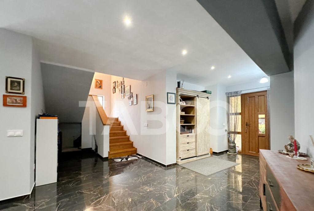 Doresti sa te muti intr-o zona mai linistita si retrasa TABOO Imobiliare iti propune aceasta casa de vanzare cu 5 camere in zona Selimbar Sibiu Casa de vanzare din Sibiu este o casa de tip triplex cu un regim de inaltime Parter 1 etaje/mansarda Casa este compartimentata astfel Parter hol living baie bucatarie Etaj/Mansarda hol 3 dormitoare baie Pod depozitare Casa a fost construita in anul 2017 cu o structura din caramida si sistem de incalzire cu centrala proprie calorifere Suprafata construita a casei este de 192 mp suprafata utila 160 mp iar terenul are o suprafata totala de 184 mp Casa este mobilata complet si utilata plita cuptor hota aragaz masina de spalat rufe masina de spalat vase frigider cu congelator cuptor cu microunde espressor de cafea Casa are o curte libera 120 mp cu 1 loc de parcare garaj si suficient loc pentru zona de joaca a copiilor Finisajele interioare sunt clasice Usa intrare metal Usi interioare lemn ...