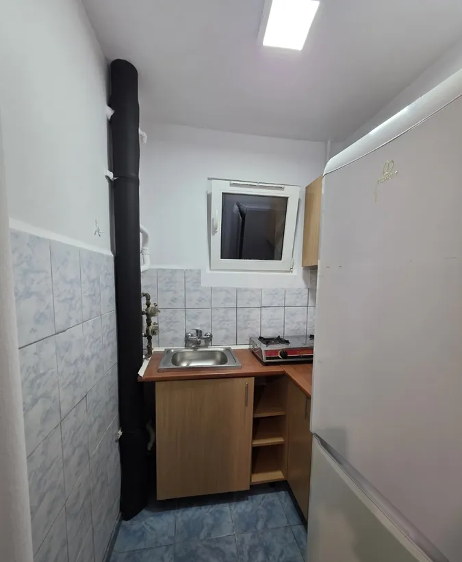 Garsoniera este mobilata si utilata , are gresie, faianta, parchet, termopane, usa metalica, frigider, masina spalat, TV, aragaz, cuptor.
