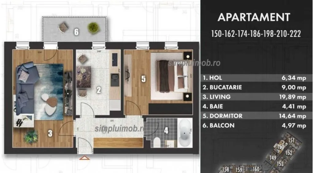 Apartamentul are o suprafață totală de 59,25 mp, din care balconul însumează 4,97 mp, oferind un spațiu bine compartimentat, ideal atât pentru locuit, cât și pentru investiție. Este dotat cu centrală termică proprie, asigurând confort și eficiență energetică.