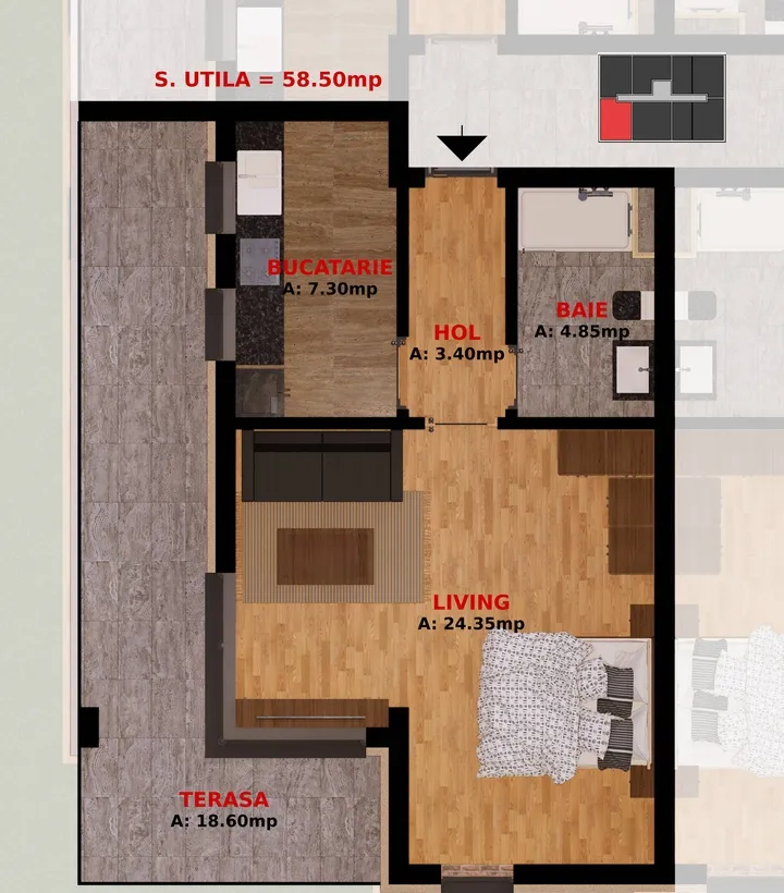 Apartamente Moderne si Confortabile . Suprafata utila: De la 35 m² la 68 m²