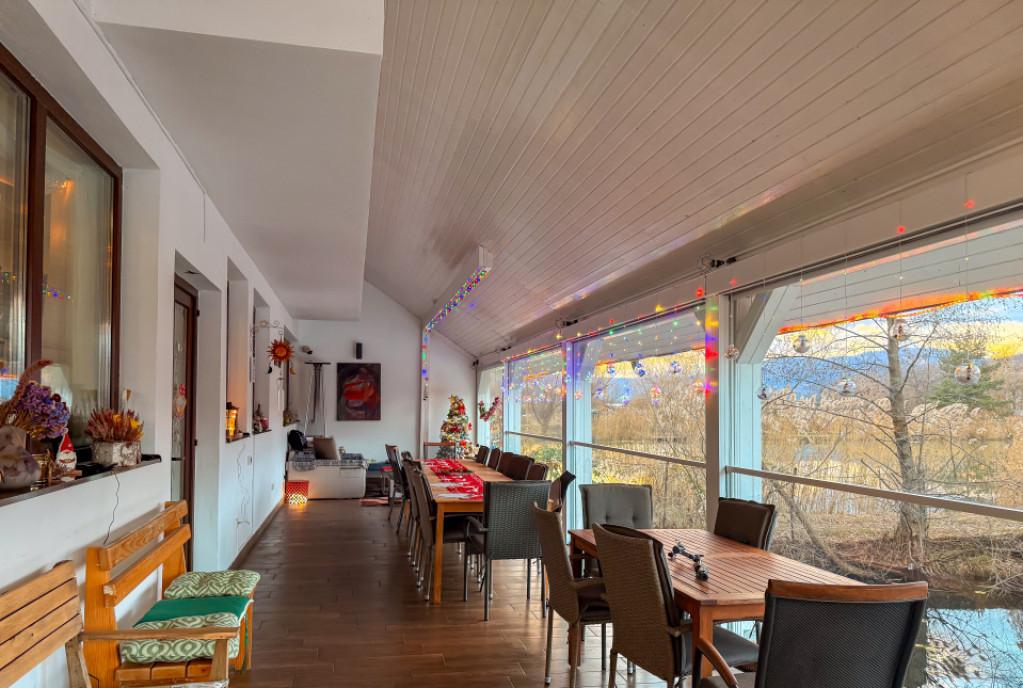 699 000 EUR Un domeniu privat cu apa ponton si 5 casute plutitoare Exista proprietati frumoase si exista locuri care iti schimba complet ritmul vietii Pe 4 705 mp cu 3 iazuri aprox 2 000 mp luciu de apa aceasta vila de 355 mp D P E M iti ofera exact acel sentiment rar intimitate natura si confort la drum principal asfaltat Vila -- construita in 2011 renovata in 2018 clasa energetica B structura solida si incalzire geotermala cu pompa de caldura eficienta si eleganta prin simplitate Spatiile sunt gandite pentru oameni familie si oaspeti living generos 40 mp dining 20 mp plus camere cu bai proprii etaj si mansarda Fiecare camera are decor individual de un bun gust desavarsit Vila vine complet mobilata si utilata un loc care poate fi acasa dar si o pensiune boutique / retreat perfect functional Zona de relaxare e gata de poveste Foisor complet echipat cu gratar cuptor de pizza blat de granit 2 frigidere de bauturi si chiar 2 grupuri sanitare cu dus -- ca oaspetii sa ramana nu doar sa treaca Iar afara e partea pe care nu o uiti ponton barca metalica 5 casute plutitoare apa liniste natura Suna la 0722 660 100 pentru detalii tehnice/ tur privat CompasImobiliare VilaDeLux DomeniuPrivat Retreat BoutiqueLodge Id intern P227447