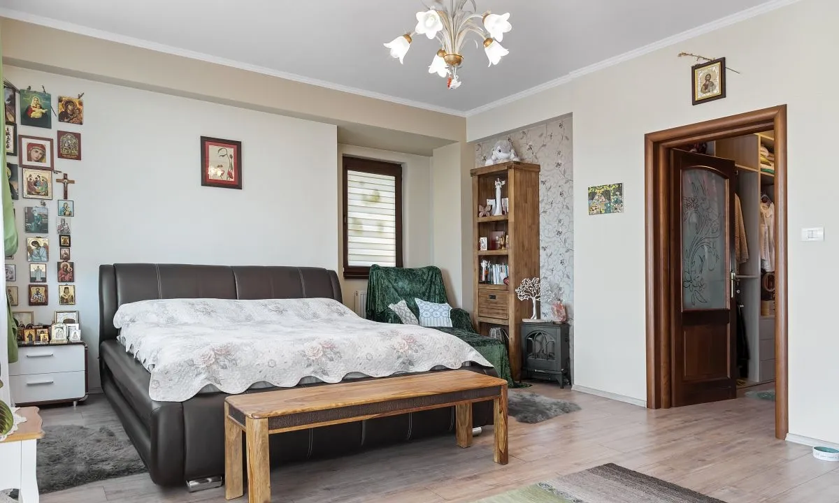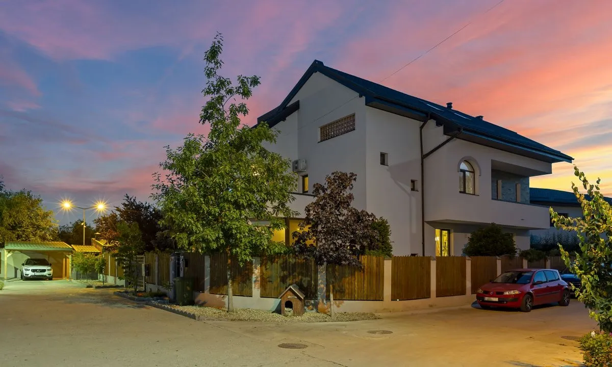 Confortul este dat nu numai de spatiul intern locativ destul de amplu, caracterizat prin suprafete vitrate generoase si inaltimea camerelor, dar si de cel exterior – foisorul utilat, curtea generoasa, gradina frumos amenajata in care intalnesti diferite specii de conifere, arbusti ornamentali, hortensii, trandafiri, magnolii, lavanda, 2 pomi fructiferi, 1 falnic stejar, cateva specii de brazi, artar japonez.