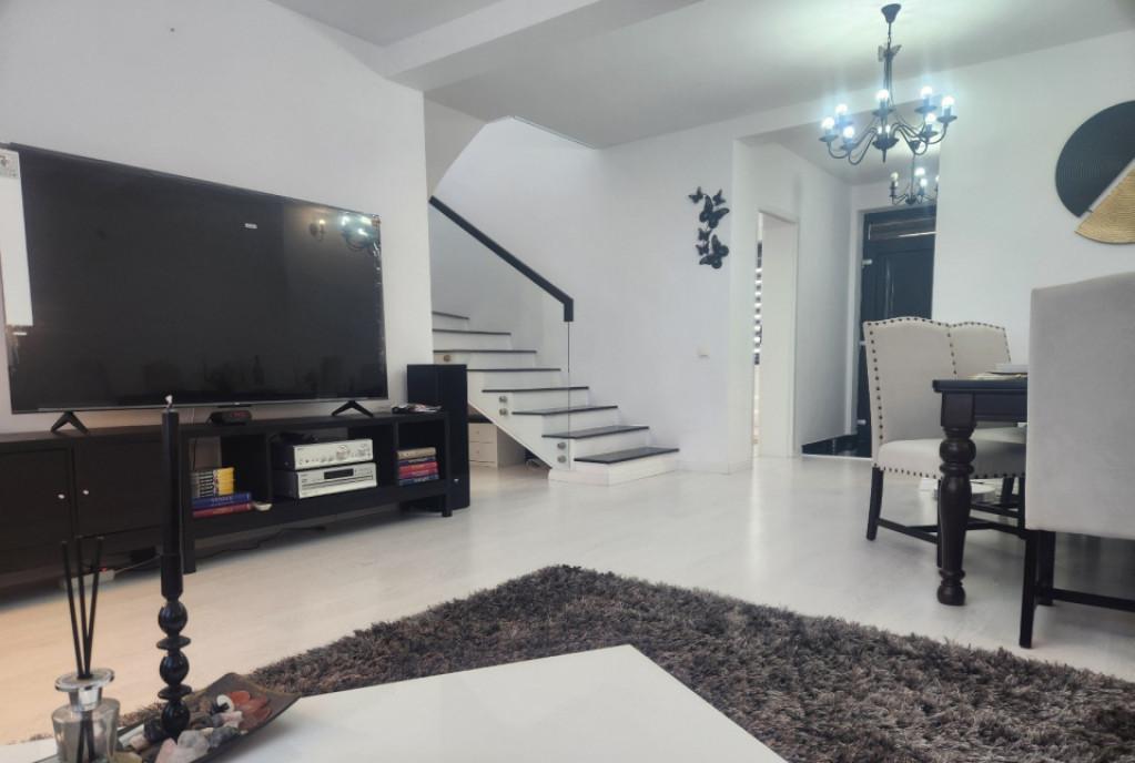 DMC Imobiliare va prezinta spre vanzare o vila intr-un ansamblu rezidential nou situat in Domnesti Locuinta este tip duplex P 1 Pod cu o suprafata utila de 135mp teren 250mp in proprietate exclusiva Compartimentare parter living - 30mp bucatarie- 11mp grup sanitar- 4 12mp camera tehnica- 4 35mp hol- 5mp Etaj dormitor - 18 33mp dormitor-16 18mp birou - 11 19mp baie 1- 4mp baie 2- 4mp hol - 5mp Podul este open space si are aproximativ -50mp utilizabili Constructia este pe cadre de beton armat zidarie exterior si interior din caramida Soceram termosistem 10 cm structurata siliconata acoperis integral sistem Bilka ferestre tripan si feronerie rotto incalzire in pardoseala Izolatie cu vata minerala intre etajul 1 si pod Vila se vinde mobilata si utilata Bariera la intrarea in complex iluminat stradal curti amenajate Daca iti doresti o locuinta exclusivista intr-un complex rezidential nou noi avem solutia Programeaza o vizionare Va putem indruma pentru obtinerea unui credit imobiliar catre bancile partenere Id intern P142747