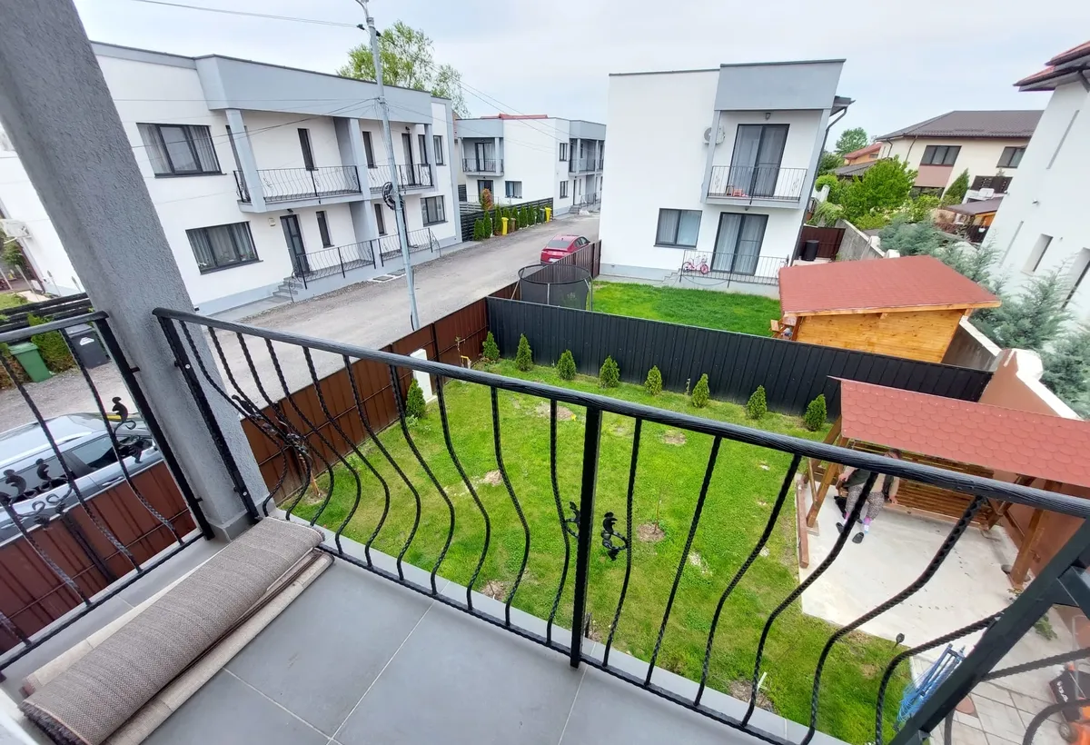 vila deosebita tip duplex P+1 compusa din parter-living, baie si bucatarie, etaj- 3 dormitoare + baie, suprafata utila 136, suprafata teren 245 mp, vila se afla intr-un complex rezidential la 4 km de centura.