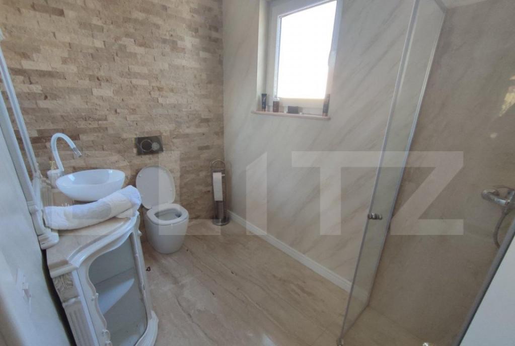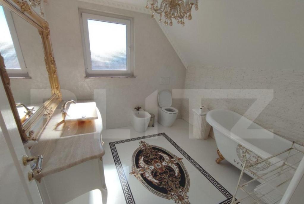 Va invit sa descoperiti aceasta casa individuala cu 4 camere situata intr-o zona linistita si plina de verdeata o casa cu teren de 243 mp ferita de tumultul orasului cu acces usor in principalele puncte ale orasului O casa cu locatie unica cu regim de inaltime parter etaj si pod generos cu o suprafata utila de 135 mp in prezent podul este amenajat ca spatiu de depozitare curte amenajata cu gazon si terasa exact ca in fotografii Aceasta proprietate ofera un mediu perfect pentru confort cu atentie la fiecare detaliu Iata cateva dintre caracteristicile dotarile si facilitatile acesteia o Bucataria este inchisa si are un spatiu generos cu o suprafata de 15 mp o Livingul are o suprafata de 29 mp cu acces spre terasa si gradina o 3 bai moderne echipate cu cada sau dus cu rigola si perete din sticla chiuveta vas WC o 3 Dormitoare spatioase din care 1 matrimonial cu baie proprie spatii depozitare o Pod amenajat pentru depozitare o Curtea este amenaja...