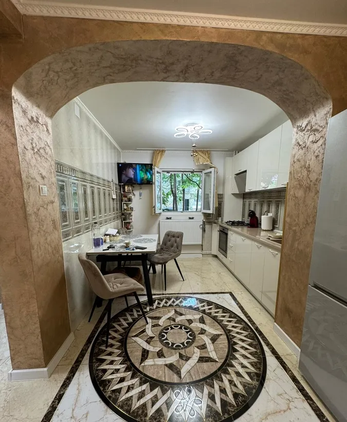 renovat complet, bucatarie mobilata si utilata, posibilitate balcon, 2 bai, instalatii electrice si sanitare schimbate, sapa turnata, totul nou, vedere spate, bloc reabilitat