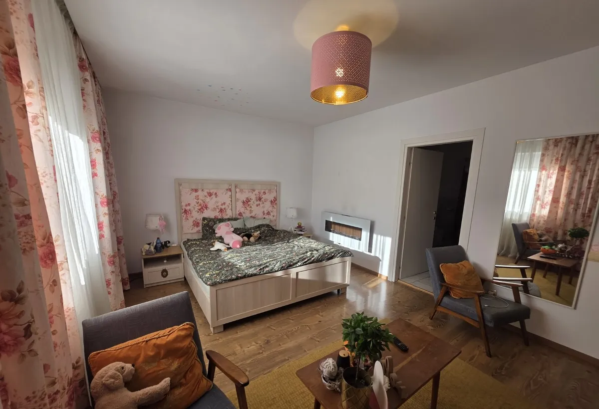 Finisajele sunt de calitate, centrala proprie pe gaz, gresie, faianta, parchet, geam termopan, rulouri exterioare, aer conditionat.