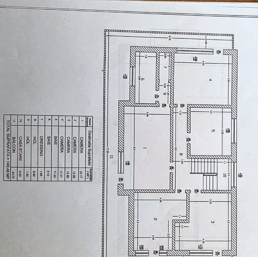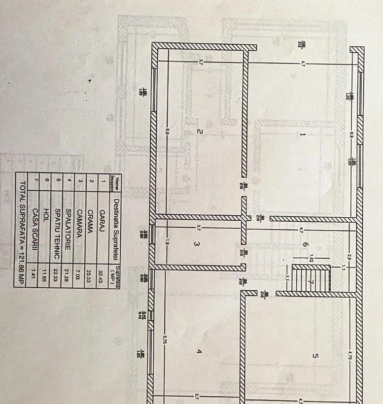 Vila este construita pe un teren de 600 mp, are o suprafata de 500 mp, la subsol 122 mp, parter 116 mp, la etajul 1 sunt 149 mp si la etajul 2 sunt 117 mp.