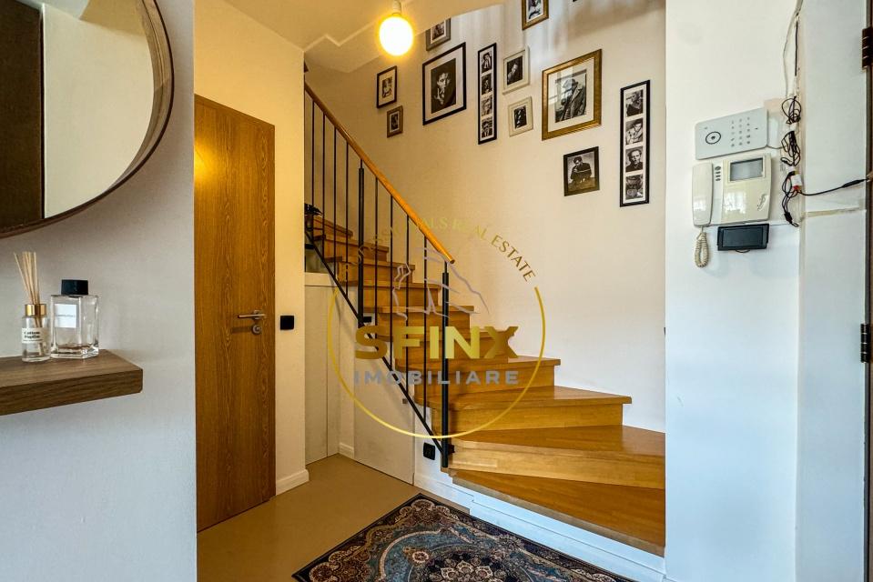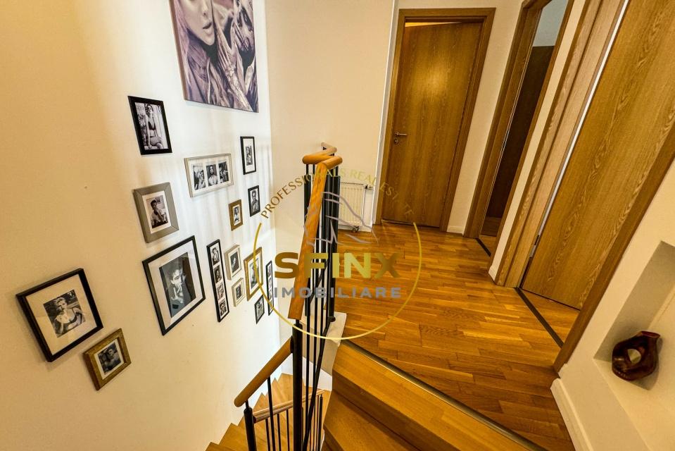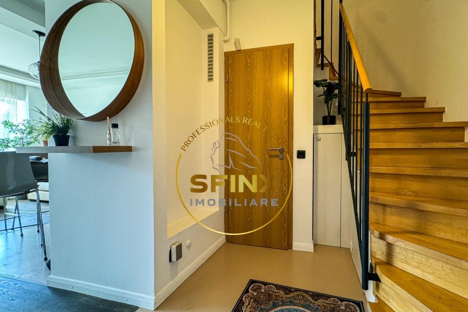Comision 0 de la cumparator Va prezentam un apartament cu 3 camere tip duplex dispus pe doua etaje 11 si 12 cu scara interioara complet mobilat si renovat in noiembrie 2024 situat in ansamblul New Town Residence Apartamentul este compus astfel La etajul 11 living cu bucatarie open space baie de serviciu si o terasa de 10 mp La etajul 12 doua dormitoare ambele cu iesire catre o a doua terasa de 10 mp si o baie Accesul se face pe o scara interioara eleganta Locuinta este complet mobilata si utilata beneficiaza de centrala termica proprie pe gaz noua instalata in 2025 sistem de aer conditionat multisplit in toate camerele precum si multiple spatii de depozitare Un loc de parcare suprateran este inclus in pret Complexul rezidential ofera gradina interioara frumos amenajata parcare pentru biciclete acces securizat paza 24/7 supermarket sala de fitness gradinita