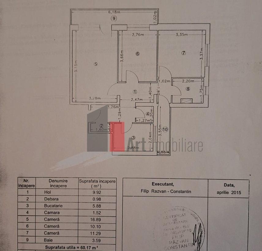 Agentia imobiliara Coaltini Solution va ofera spre vanzare apartament 3 camere confort 1 zona Viziru 3 Dotari centrala termica termopan exterior faianta gresie parchet Apartamentul este liber actele la zi Pret 54000 euro negociabil