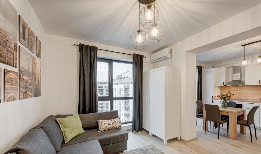 Inchiriez studio zona Aviatiei Str Gheorghe Buciumat Aviatiei Apartments bloc 2020 la 12 minute metrou Aurel Vlaicu semidecomandat suprafata aprox 45 m2 etaj 1/6 complet mobilata si utilata NOU si MODERN g f p t um Dotari Balcon deschis 6 m2 tip terasa centrala termica Buderus proprie pe gaz incalzire in pardoseala aer conditionat televizor smart LG UltraWide 165 cm canapea extensibiba tip coltar pat matrimonial dressing generos spatii depozitare plita inductie cuptor electric hota combina frigorifica incorporabile cmasina de spalat rufe incastrata parchet triplustratificat din lemn natural Ansamblul rezidential Aviatiei Apartments dispune de finisaje exceptionale compartimentari eficiente suprafete vitrate largi 2 500 mp de spatii verzi amenajate spectaculos cu plante inalte si copaci strazi si alei interioare largi terase generoase locuri de joaca pentru copii locuri de parcare pentru biciclete DISPONIBILITATE IMEDIATA