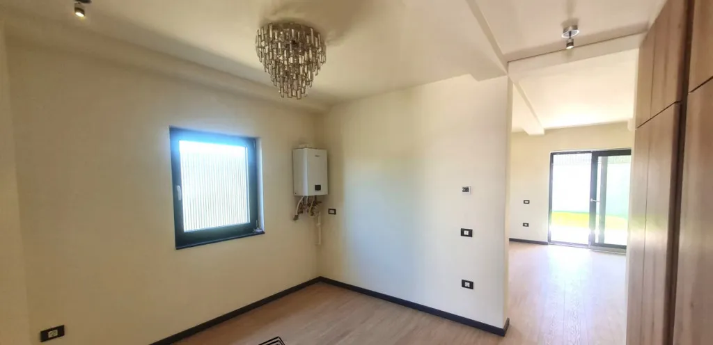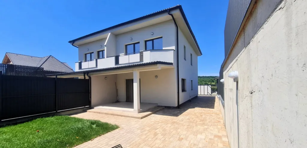 Casa se vinde la stadiul de cheie, cu centrala proprie cu incalzire in pardoseala, prize, intrerupatoare, lumini LED, scari ilumnate, banda lmini scari intrare in casa pe senzori, poarta actionata electric, gard, curte amenajata cu pavaj, zona verde, apa si curent pregatite in curte pentru zona de gratar.