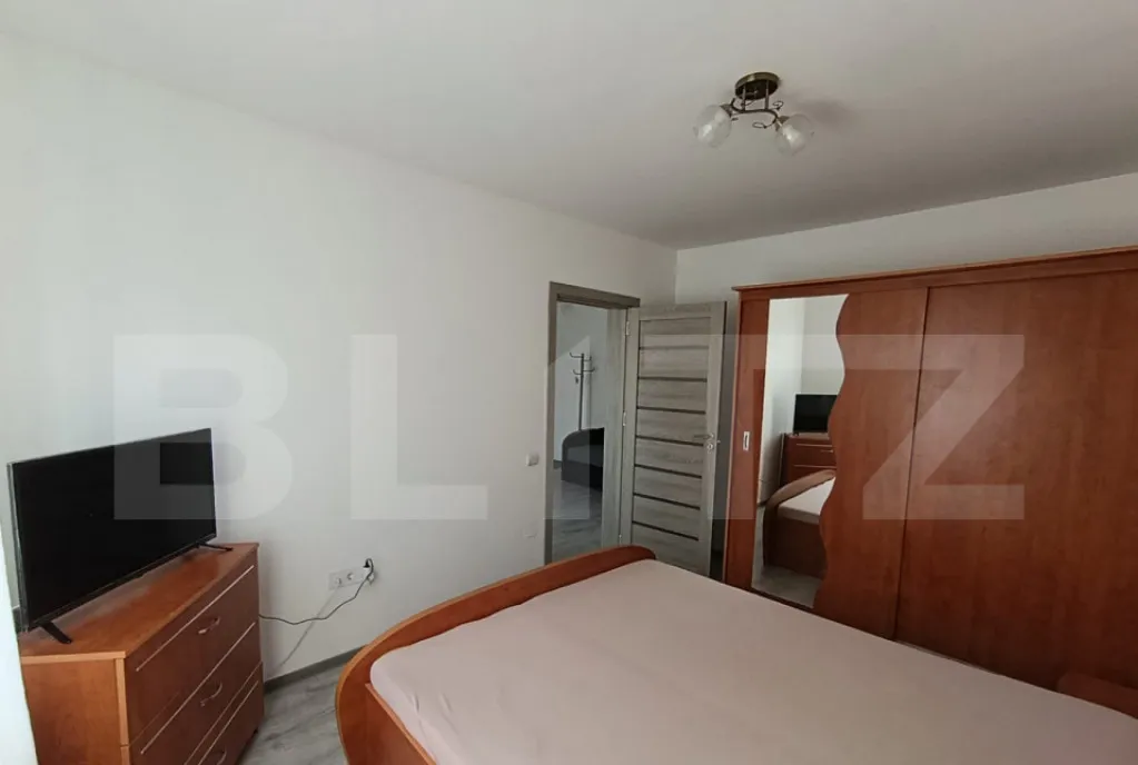 Compartimentarea este practică: două dormitoare, living cu bucătărie open space, baie și hol de acces. Locuința se vinde complet mobilată și utilată (centrală termică, mașină de spălat, frigider), fiind pregătită pentru mutare imediată.
