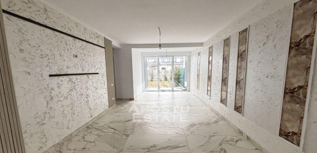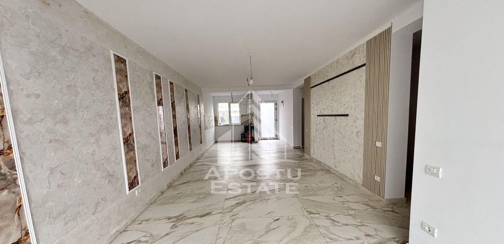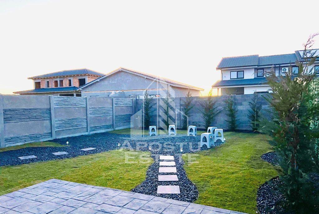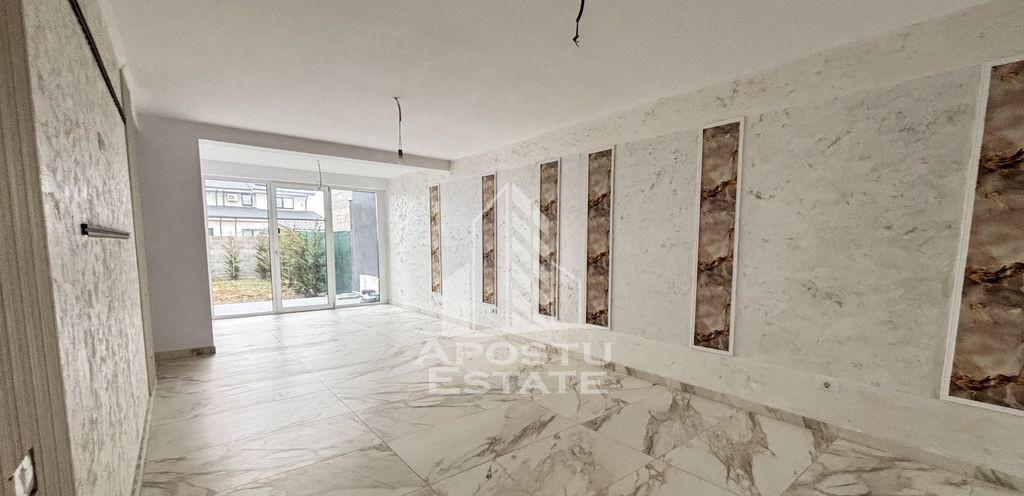 Apostu Estate va ofera spre vanzare 1/2 de duplex cu despartit prin perete dublu pe parter in Mosnita Noua Compartimentare este foarte buna Dispune de un living spatios si luminos cu bucatarie open space si posibilitate de inchidere a bucatariei dupa preferinte Dormitor matrimonial cu baie al doilea dormitor spatios 2 Bai care vor fi finalizate si bugetate in functie de cerintele clientului Curtea se preda finzalizata cu rulouri de gazon Teren imprejmuit de leylandii Suprafata utila este de 90mp iar terenul aferent proprietatii este de 350 mp Poarta cu acces auto Finisaje premium tripan Confortul termic se realizeaza cu ajutorul centralei termice pe gaz cu incalzire in pardoseala Va asteptam sa descoriti acest imobil deosebit la o vizionare