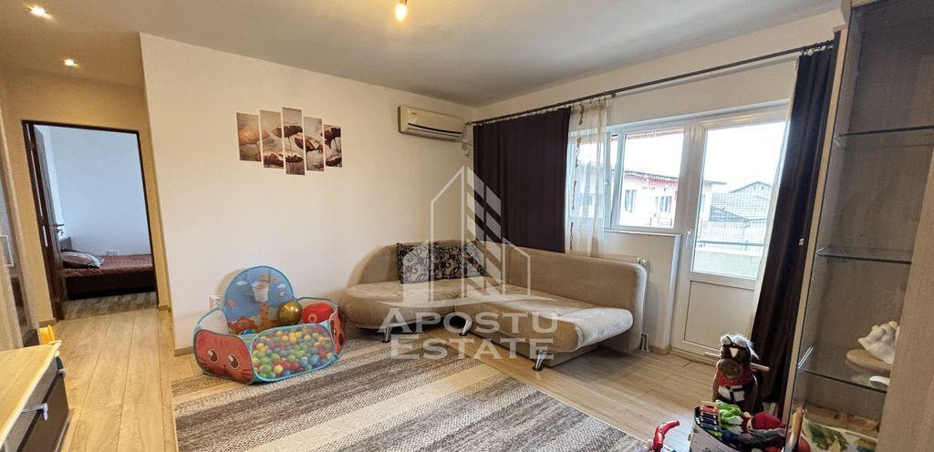 Apostu Estate va propune spre vanzare un apartament cu 2 camere intr-o zona linistita ideal pentru o familie sau pentru investitie Detalii generale o Suprafata utila 38 mp o Etaj 4 din 4 o Curte amenajata in fata blocului - spatiu verde si relaxare Compartimentare functionala o Hol de acces o Bucatarie separata complet mobilata si utilata aragaz frigider hota o Living o Dormitor cu balcon o Baie prevazuta cu geam pentru aerisire Dotari si avantaje o Centrala termica proprie si aparat de aer conditionat - confort termic ridicat o Se vinde complet mobilat si utilat - totul gata pentru a fi locuit o Zona foarte linistita cu acces facil catre mijloace de transport scoli magazine si alte puncte de interes Un apartament bine compartimentat intretinut si complet echipat gata sa devina noul tau camin Programeaza o vizionare si descopera toate avantajele acestui imobil