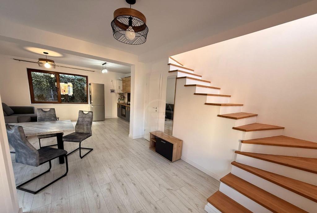 Avem o noua oferta exceptionala pentru dumneavoastra Imobilul face parte dintr-o constructie noua EDIL Floresti imobiliare va ofera spre inchiriere o casa duplex in FLORESTI zona EROILOR Casa de 3 camere bucatarie 2 bai are o suprafata utila de 77 mp cu un teren de 324 mp Aceasta este situata aproape de mijloacele de transport Imobilul se inchiriaza mobilat si utilat cu bucatarie mobilata si utilata mai are si alte dotari precum centrala proprie ferestre de termopan usa metalica gradina acces auto in curte frigider aragaz masina de spalat televizor Daca va place aceasta oferta sau pentru alte oferte nu ezitati sa ne contactati telefonic sau la sediul nostru EDIL Floresti Str Eroilor Nr 25 Ap 15 et 1 Floresti CACJ246632