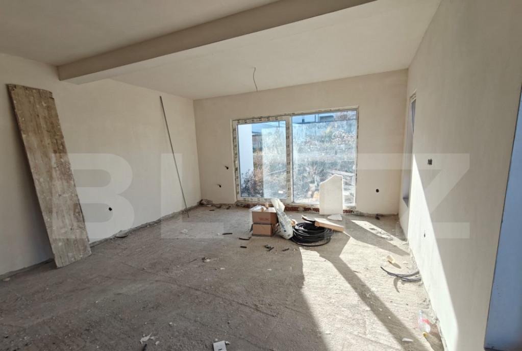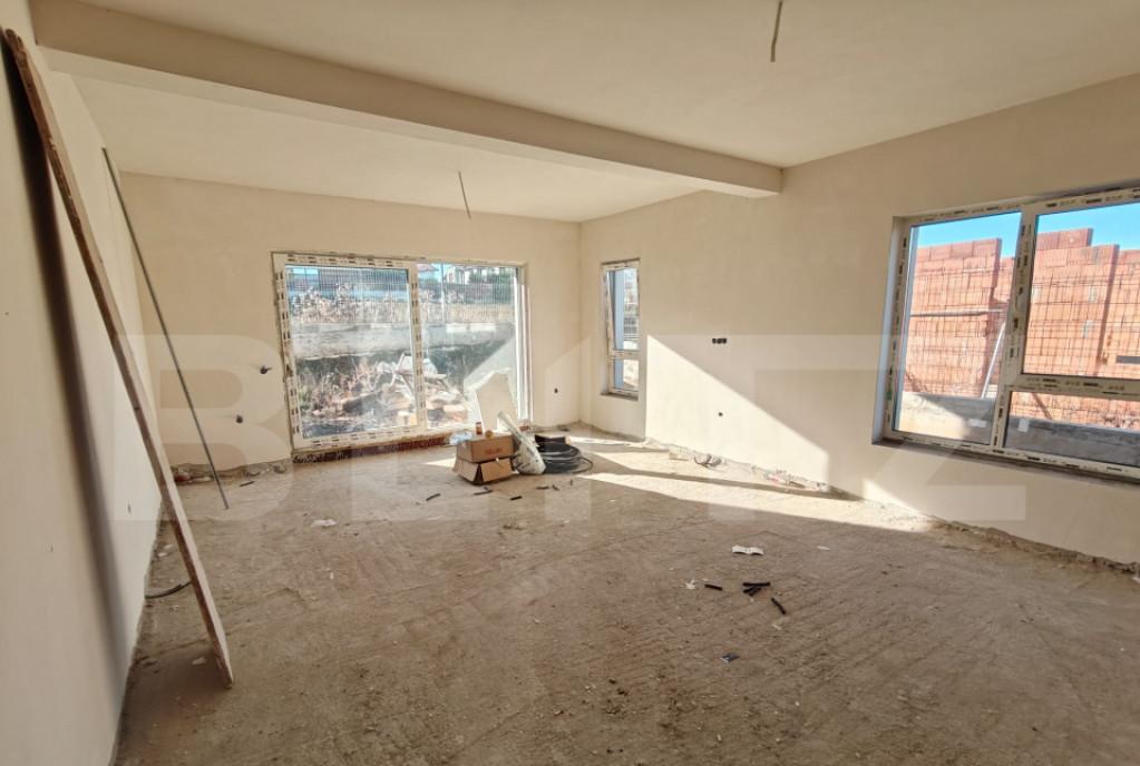 Blitz va propune o casa moderna si practica perfecta pentru o familie sau pentru cei care isi doresc confort pe un singur nivel Proprietatea are 85 m2 utili compartimentati eficient si este amplasata pe un teren de 350 m2 suficient pentru gradina loc de relaxare sau spatii de joaca cu posibilitatea de a achizitiona inca 350 m2 Compartimentare -2 dormitoare luminoase ideale pentru familie birou sau camera de oaspeti -Living generos cu acces facil catre zona de dining si bucatarie -Bucatarie care poate fi realizata deschisa sau inchisa in functie de preferintele cumparatorului -Baie spatioasa Proprietatea se afla intr-o zona linistita cu multe spatii verzi in apropiere Accesul catre oras este foarte facil - exista statie de autobuz la doar 20 de metri ceea ce face deplasarea rapida si comoda chiar si fara masina O casa eficienta personalizabila si amplasata intr-o locatie avantajoasa - ideala pentru cei care cauta liniste dar vor sa ramana conectati la...