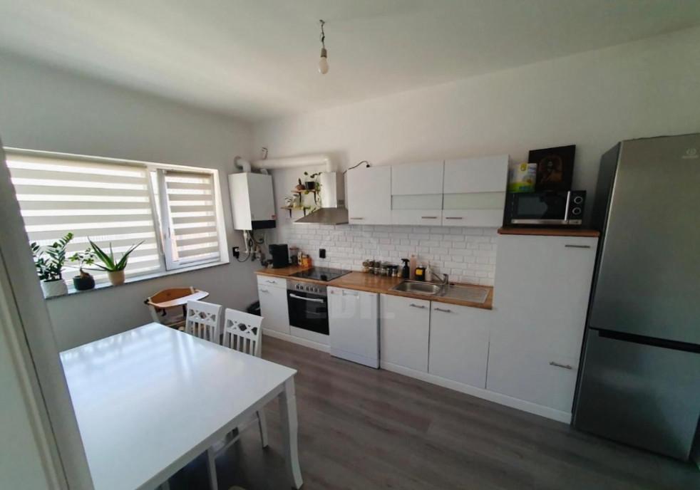 EDIL Floresti va propune spre vanzare un apartament cu 3 camere situat intr-o zona ultracentrala a localitatii Floresti ideala pentru cei care isi doresc acces rapid la toate facilitatile urbane Apartamentul este parte a unei constructii noi finalizata si locuita aflata la doar cativa pasi de centrul comunei oferind un stil de viata comod si modern Cu o suprafata utila de 56 mp locuinta este amplasata la etajul 6 al unui imobil cu 8 niveluri dotat cu lift si interfon iar orientarea vestica asigura lumina naturala pe tot parcursul dupa-amiezii Compartimentarea este eficienta semidecomandata si include un hol de acces un living cu bucatarie open-space doua dormitoare o baie si o terasa spatioasa de 12 mp perfecta pentru momente de relaxare Apartamentul se preda complet mobilat si utilat cu dotari moderne precum centrala termica proprie incalzire in pardoseala parchet laminat faianta si gresie de calitate superioara Printre electrocasnicele incluse se regasesc tele...
