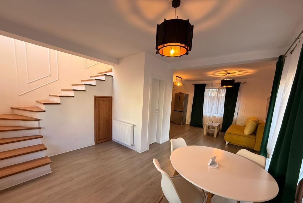 ID intern 4823 REGIS Imobiliare va propune spre inchiriere VILA COCHETA 4 CAMERE 3 BAI CU PARCARE DIRECTA IN LOCUINTA In apropiere de restaurant Roata Norocului aproape de principalele obiective culturale si turistice din oras Acces rapid la Gara Brasov supermarket piata banca Farmacie Se preteaza pentru o familie sau cuplu care doreste sa locuiasca in proximitate cu Piata Sfatului Restaurante Mall Coresi Strada Lunga in zona istorica Proprietatea este dispusa P E Mansarda cu o suprafata utila de 120 mp impartiti dupa cum urmeaza PARTER bucatarie zona de servit masa grup sanitar hol garaj cu intrare directa in casa ETAJ living 2 dormitoare baie MANSARDA living dormitor baie Proprietatea beneficiaza de finisaje cu mobiler clasic cu elemente moderne Locatia este utilata si mobilata complet foarte curat Accesul cu masina sau pietonal din strada Lunga VILA are izolatie pe interior si exterior Brasovul Vechi ofera accesul facil la princi...