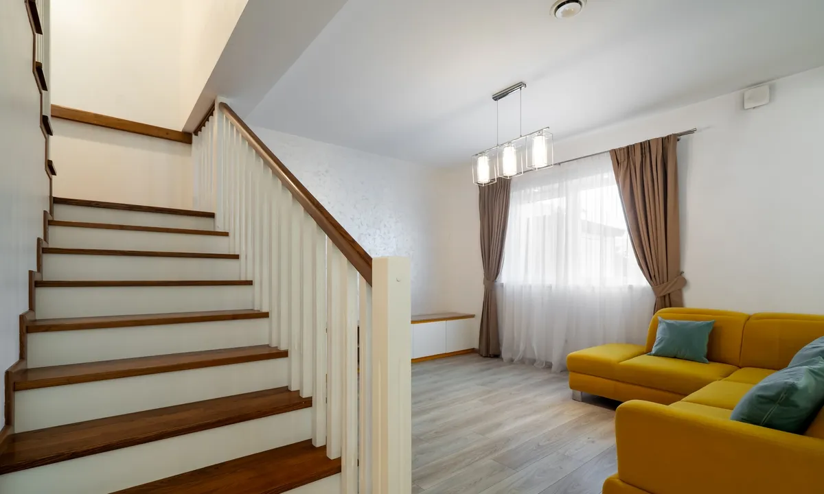 Cu o suprafata utila de 112 mp, gradina proprie, loc de parcare si peste 1.000 mp de spatii comune, locuinta are o functionalitate foarte buna a spatiului. Totul este functional, baia de parter este dotata cu cabina de dus, cea de la etaj are masina de spalat, uscator si cada cu hidromasaj, iar pentru cine doreste se poate monta bideu