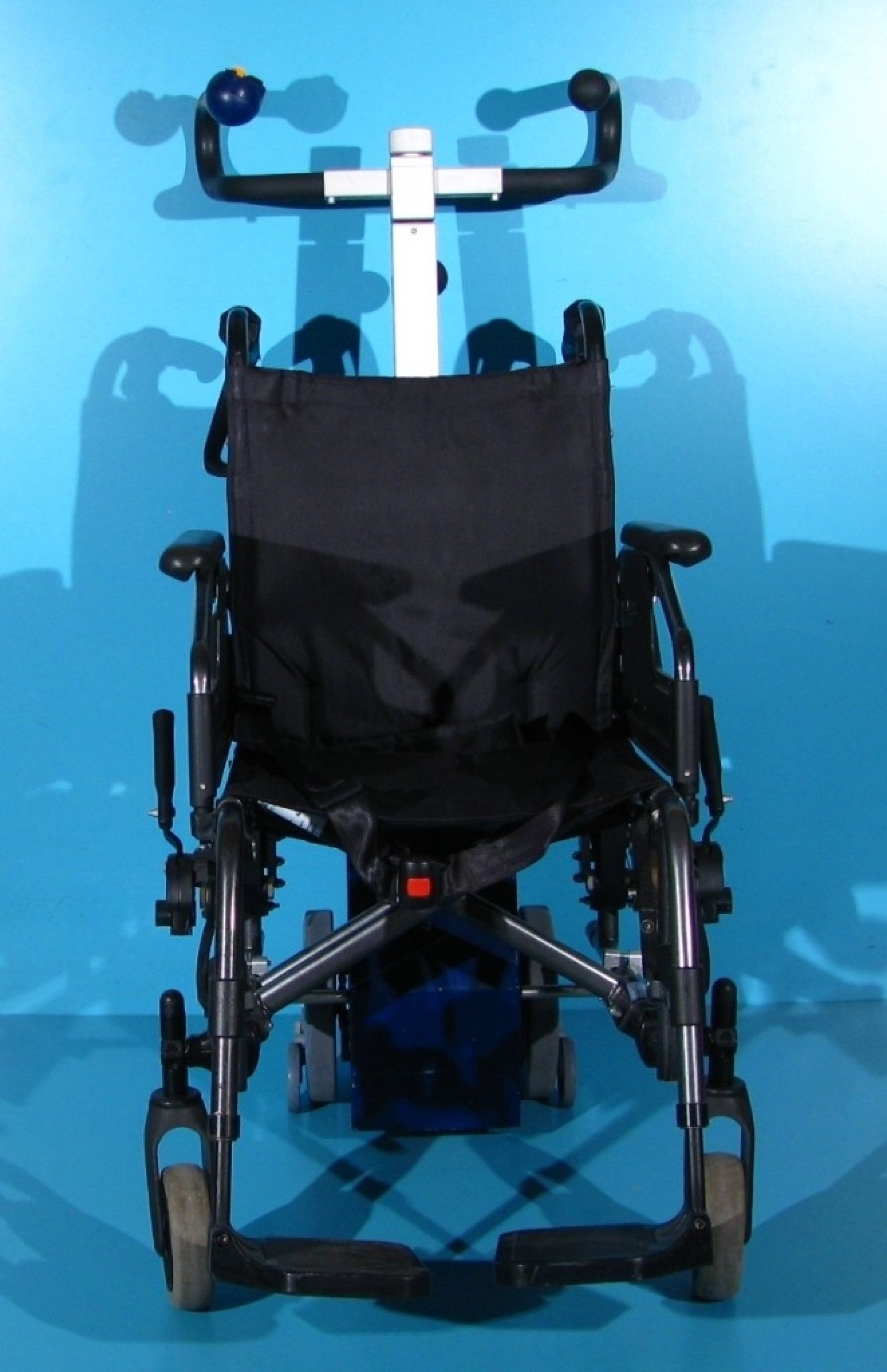 Scaunul este dotat cu frane atat pentru pacient cat si pentru insotitor, si centura de siguranta.