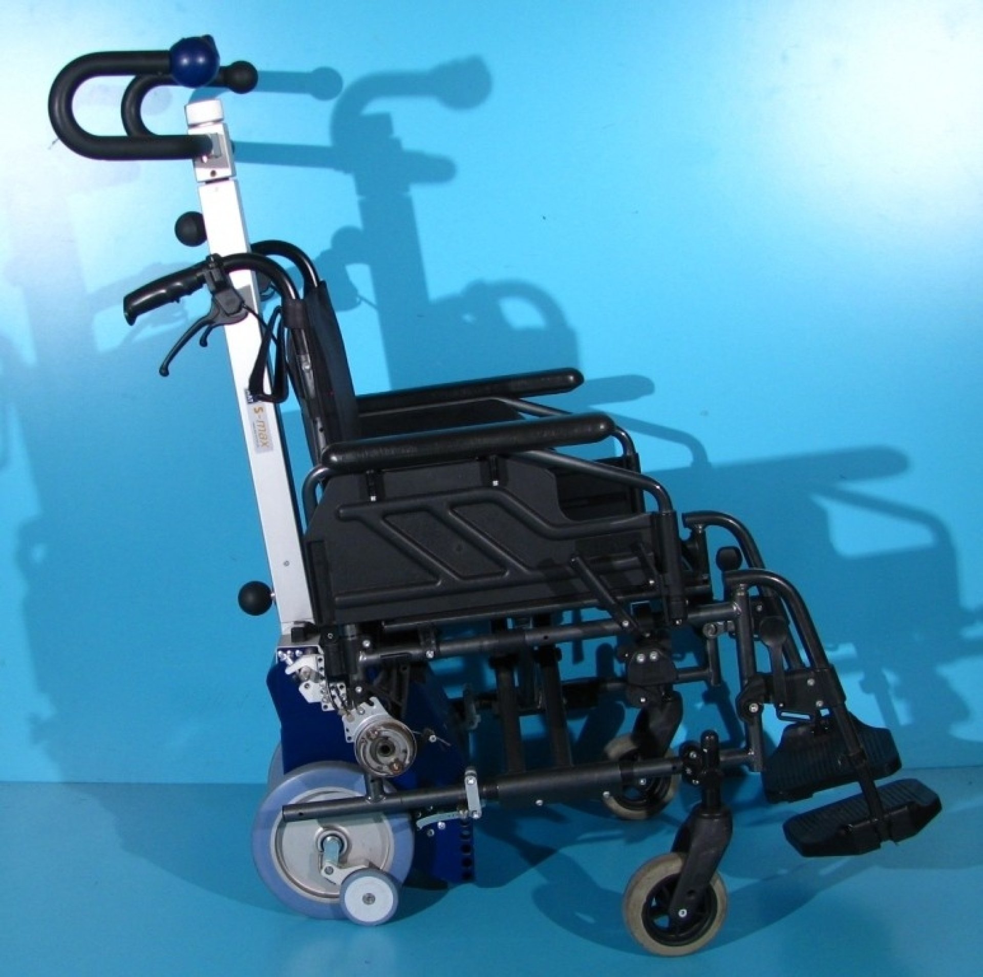 Scaun cu rotile electric, creat special pentru insotitorii persoanelor cu handicap locomotor, batranilor si a persoanelor cu mobilitate redusa. Acest dispozitiv pentru scaunul cu rotile, vine cu un nou concept pentru impingere si franare, facand dintr-o deplasare greoaie si plina de efort, o plimbare relaxanta si placuta atat pentru insotitor cat si pentru utilizator. Dispozitivul propulseaza direct roțile din spate ale scaunului cu rotile in ambele directii (inainte si inapoi). Franarea si acceleratia se face din maneta insotitorului. Dispozitivul V-max AAT si bateria acestuia se detaseaza foarte usor de scaunul cu rotile facandu-l pliabil, usor de manevrat, transportat si depozitat. Meyra este denumirea scaunului cu rotile pe care este instalat acest dispozitiv. Caruciorul cu rotile este prevazut cu cauciucuri pline (fara camere) care nu necesita intretinere. Scaunul handicap dispune de lateralele rabatabile sus/jos, centura de siguranta, si rotite...
