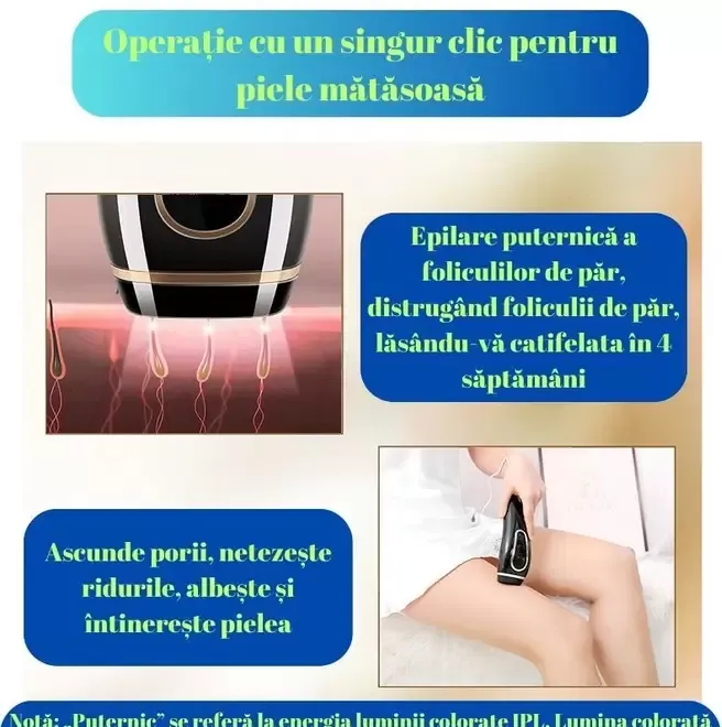 Pentru Uz Casnic Acest epilator este ideal pentru utilizarea la domiciliu oferindu-ti posibilitatea de a beneficia de beneficiile epilarii permanente in confortul propriei case