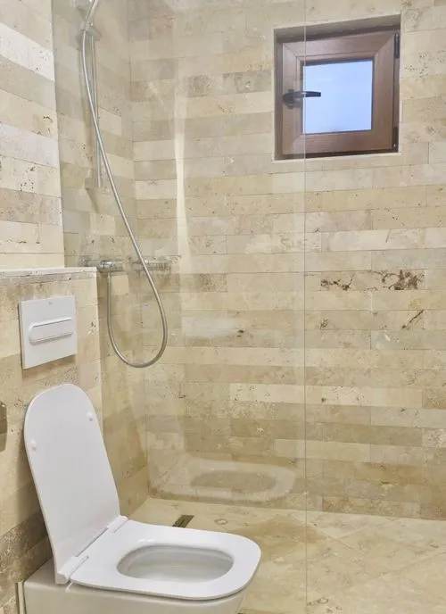 - Două băi, fiecare cu geam pentru ventilație naturală și prospețime