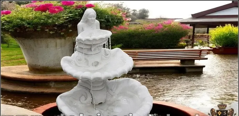 Fantana arteziana scoica mare alb marmorat model F6