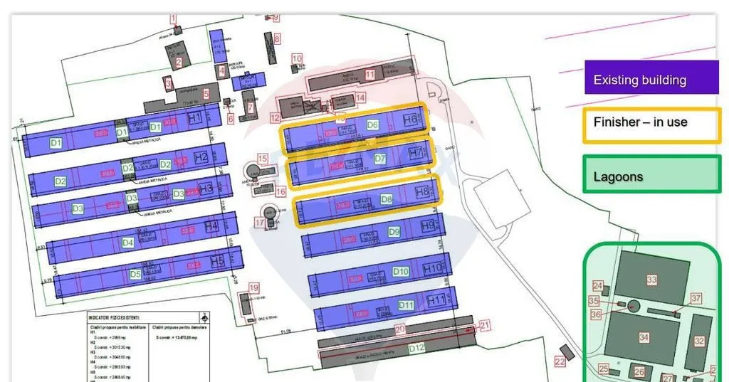 12 hale de producție pentru creșterea porcinelor – dintre care 3 modernizate, complet funcționale, cu sisteme de ventilație și infrastructură actualizată