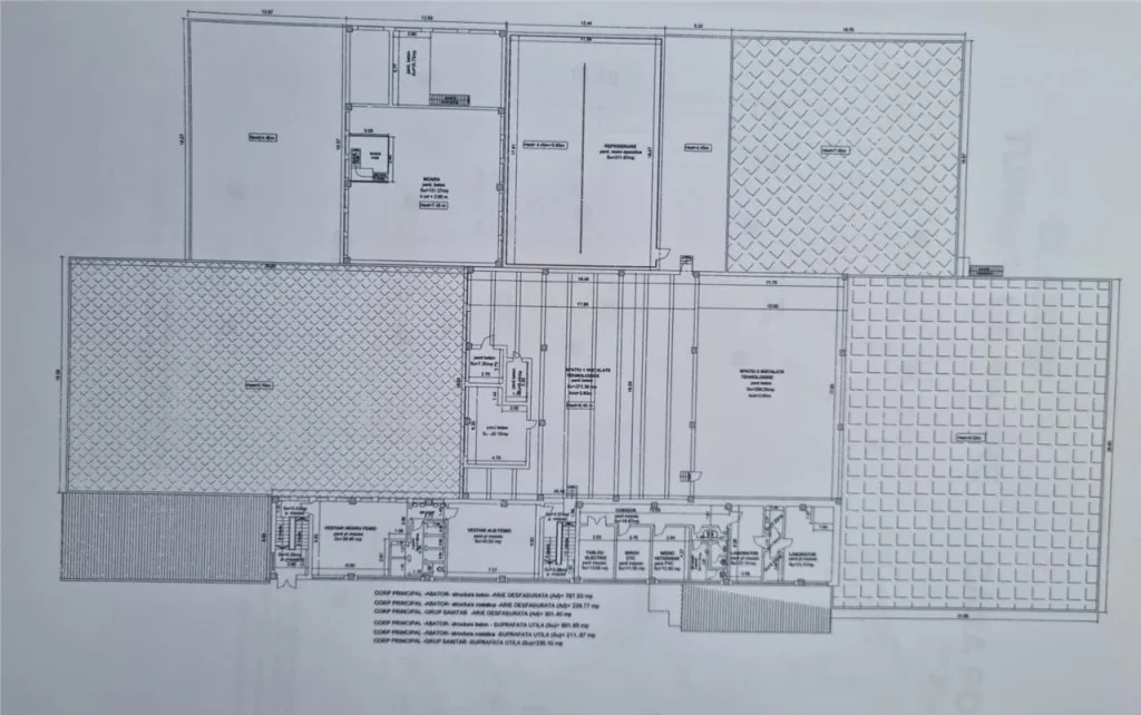Suprafata construita la sol a halei este de 3.148 mp; alaturi de acesta fiind disponibile si alte spatii - anexe.