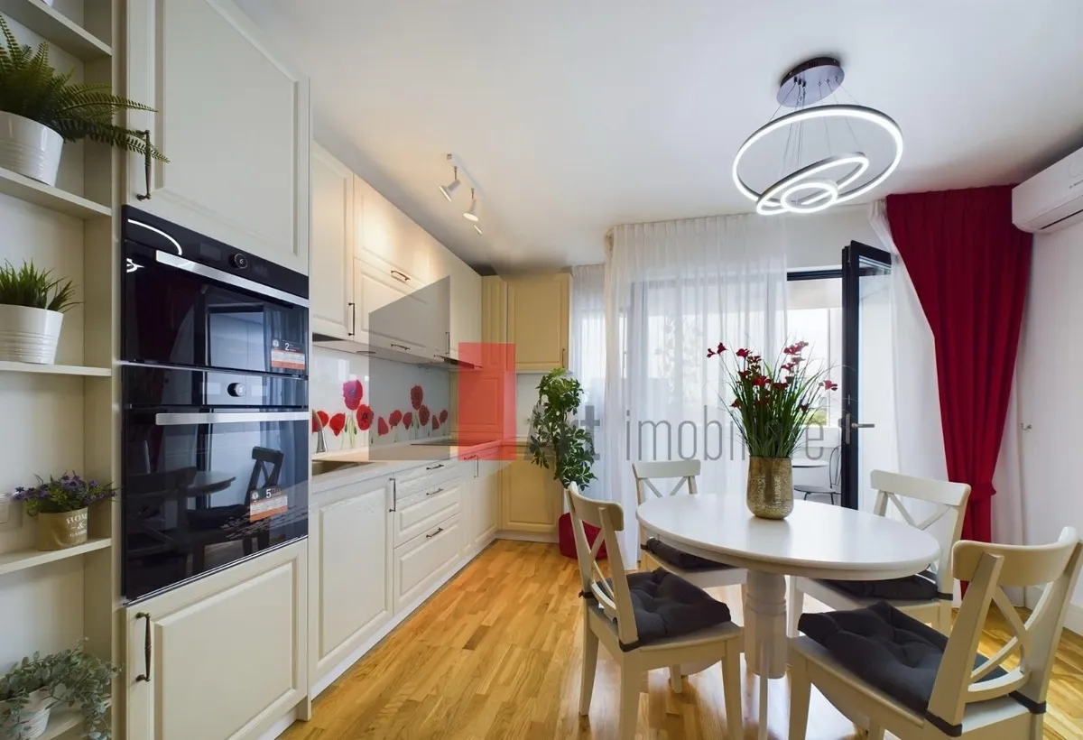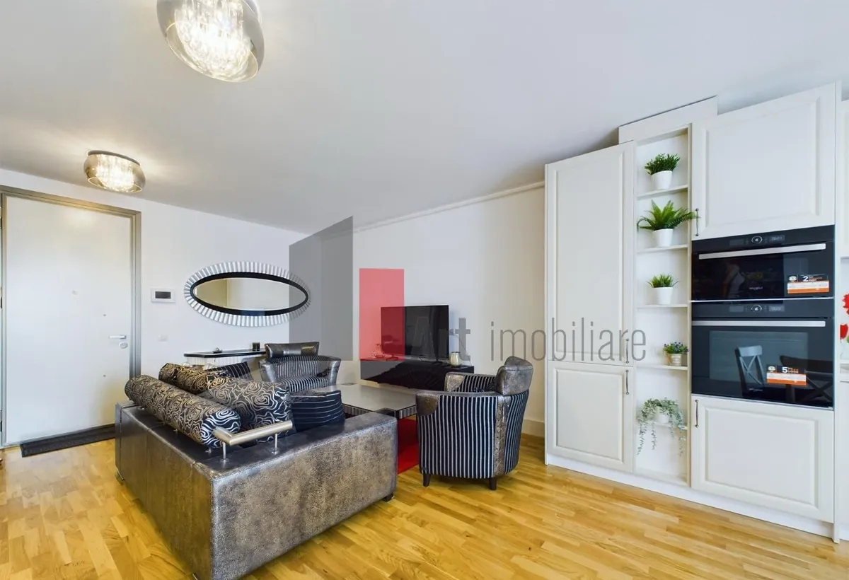 Apartamentul are o suprafata de 57 mp utili si 3 mp de balcon (deschis), avand o bucatarie open space. Dintre dotari mentionam: centrala proprie, incalzire in pardoseala, aer conditionat in living si in dormitor, plita electrica, cuptor, cuptor cu microunde si frigider incorporate etc.etc. Se face contract la ANAF