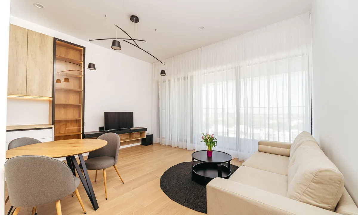 Va prezint spre inchiriere un apartament de 2 camere, situat In complexul rezidential One Verdi Park. Apartamentul se afla la etajul 14/20, si este orientat catre Nord- Est, astfel te poti bucura de un echilibru perfect de lumina pe tot parcursul zilei.Apartamentul propus este decomandat, cu o suprafata utila de 50,4 mp si o terasa de 7,2 mp, reprezentand confort sporit. Acesta este impartit astfel:- hol, living si bucatarie open-space- baie cu cabina de dus- dormitor cu acces catre terasa Incalzirea se face prin pardoseala si ventiloconvectoare, centrala fiind de imobil. Imobilul construit in anul 2023, este structurat S+P+20 E si beneficiaza de receptie, paza permanenta, camera de supravegheat, lifturi, loc de joaca, zona de relaxare, supermarket Lidl.