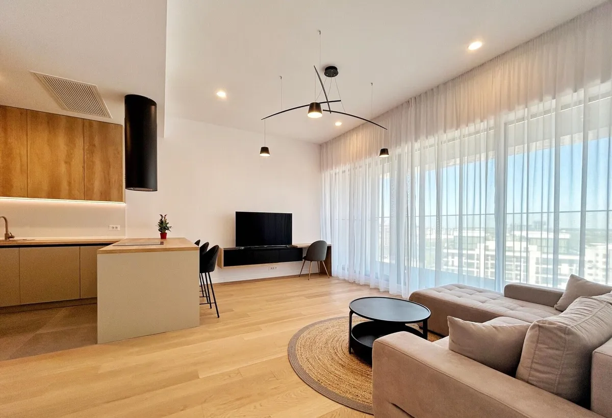 va prezint spre inchiriere un apartament de 2 camere, situat in complexul rezidential One Verdi Park. Apartamentul se afla la etajul 11/20, si este orientat catre Nord, Est, astfel te poti bucura de un echilibru perfect de lumina pe tot parcursul zilei. Apartamentul propus este decomandat, cu o suprafata utila de 49,8 mp si o terasa de 7,2 mp, reprezentand confort sporit. Acesta este impartit astfel: hol, living si bucatarie open, space, baie cu cada, dormitor cu acces catre terasa. Incalzirea se face prin pardoseala si ventiloconvectoare, centrala fiind de imobil. Imobilul beneficiaza de receptie, paza permanenta, camera de supravegheat, lifturi, loc de joaca, zona de relaxare, supermarket Lidl. Nu se accepta animale de companie. Va astept cu drag la vizionare