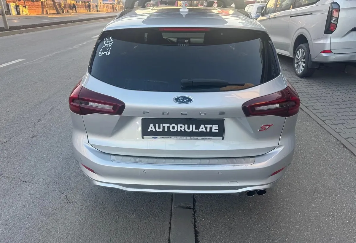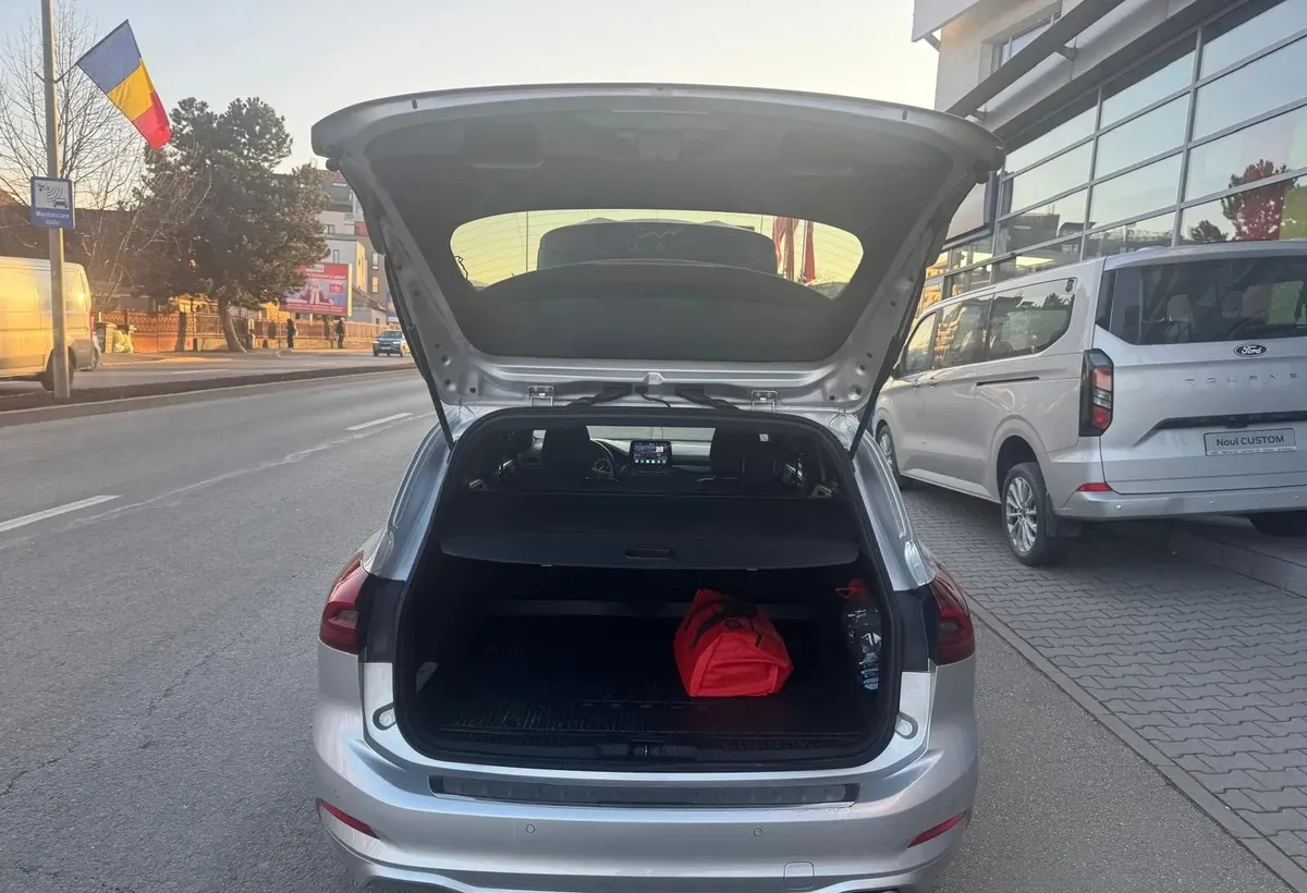 SPECIFICATII TEHNICE Putere 120 CP Transmisie Automata 8 viteze Combustibil Diesel Start/Stop Da Caroserie wagon Motor 1 5 EcoBlue Ampatament 2700 mm Lungime 4668 mm Latime cu oglinzi 1979 mm Latime cu oglinzile pliate 1848 mm Ecartament fata 1572 mm Ecartament spate 1566 mm Capacitate rezervor 47 l DOTARI STANDARD selectie quot My Key quot 5 stele la testele de siguranta Euro NCAP Sistem de asistenta pre-coliziune Sistem de franare cu suport dinamic DBS - Dynamic brake Support Sistem de avertizare pre-coliziune frontala Franare de urgenta automata AEB - Automated Emergency Braking Aer conditionat automat reglabil pe doua zone Air-bag-uri frontale si laterale tip cortina Anvelope 215/50R17 91V cu tren de rulare ecologic Bancheta spate rabatabila Bara fata in culoarea caroseriei design quot ST Line quot Bara spate cu zona superioara in culoarea caroseriei si design sportiv Computer de bord autonomie viteza medie temperatura exterioara consum mediu si instant Consola centrala cu suport pentru doua pahare si cotiera Covorase fata Cruise control cu limitator de viteza Evacuare cu design sportiv Faruri cu functie automata de aprindere si stingere pentru faza scurta Faza scurta cu tehnologie Led reflector Frana de mana electrica cu functie de quot autohold quot Geamuri electrice fata si spate cu inchidere automata si inchidere / deschidere dintr-un impuls Grila radiator cu design hexagonal quot Black Mesh quot Inchidere centralizata Keyless entry amp Keyless start Limitator de viteza inteligent Lumini de zi cu tehnologie LED Lumini lectura fata si spate cu tehnologie LED Manere usi in culoarea caroseriei Modem Ford PassConnect Pornire motor de la distanta Moduri de condus selectabile Oglinda retrovizoare electrocroma Oglinzi laterale incalzite si ajustabille electric cu functie de rabatare la incuierea autoturismului Padele pentru schimbarea treptelor de viteza Parasolar sofer si pasager cu oglinda Pedale din aluminiu Plafon interior inchis la culoare Priza 12V in portbagaj Protectie praguri fata cu sigla quot ST-Line quot Rama faruri de culoare neagra Scaun pasager reglabil manual pe doua directii Scaun sofer cu suport lombar reglabil manual Scaun sofer reglabil manual pe patru directii Scaune fata stil sport cu sustinere inalta Schimbator de viteze rotativ Senzori de parcare fata si spate Senzori de ploaie Oglinda retrovizoare electrocroma Senzori presiune in pneuri Sigla ST-Line Sine plafon negre Sistem Start / Stop Sistem de asistenta la pastrarea benzii de circulatie LKA si sistem de avertizare la parasirea benzii de circulatie LDW Sistem de asistenta la plecarea din rampa HLA ABS ESP Sistem de franare post impact Sistem de avertizare pentru necuplarea centurilor de siguranta pentru sofer si pasager Sistem de fixare ISOFIX Sistem de monitorizare pentru necuplarea centurilor de siguranta pentru locurile din spate Suport pahare iluminat Suspensie sport Tapiterie din material textil ST-Line cu cusaturi rosii Volan cu design sportiv si cusaturi rosii invelit in piele Volan reglabil axial si vertical Wireless charging DOTARI OPTIONALE DOTARI OPTIONALE ADAUGATE preturile includ tva PNZJB Vopsea metalizata Moondust Silver - 550 00 Euro D17AH Roata de rezerva de dimensiuni reduse 16 quot x 3 5 quot x 25 mm - 75 00 Euro B2GAE Geamuri spate fumurii - 250 00 Euro AGUAB Pachet Tehnologie - 900 00 Euro Recunoasterea semnelor rutiere TSR Faza lunga automata si Alerta sofer Pilot automat autoadaptiv cu centrarea pe banda de mers ICFBQ Ice Pack 49 - 250 00 Euro Sistem radio Bang amp Olufsen 10 difuzoare premium DAB Digital Audio Broadcasting Ecran tactil de 8 quot SYNC 3 cu Android Auto si Apple Car Play Comenzi radio pe volan 2 intrari USB Compatibilitate conexiune Bluetooth Sistem de navigatie AGWAB Pachet Iarna - 450 00 Euro Parbriz incalzit Volan incalzit Scaune fata incalzite Scaun pasager incalzit AGNAC Pachet Parcare - 600 00 Euro Sistem automat avansat de parcare Blind Spot Monitor amp Cross Traffic Alert cu sistem activ de franare Camera video spate cu unghi de 180 de grade Protectie deschidere usi retractabila din plastic JBBA8 Faruri cu tehnologie Full LED autoadaptive - 1000 00 Euro Faruri de ceata cu tehnologie LED Stopuri cu tehnologie LED Faruri cu ajustare automata pe inaltime Faza lunga automata D2UA1 Jante din aliaj de 18 quot design quot Matt Black quot - 650 00 Euro DOTARI EXTRA DEALER Garantie extinsa 2 5 / 100 000 km Dotari Audio si tehnologie o Android Auto o Bluetooth o Port USB o Wireless charging o Sistem navigatie o Sistem audio o Monitor cu touch screen