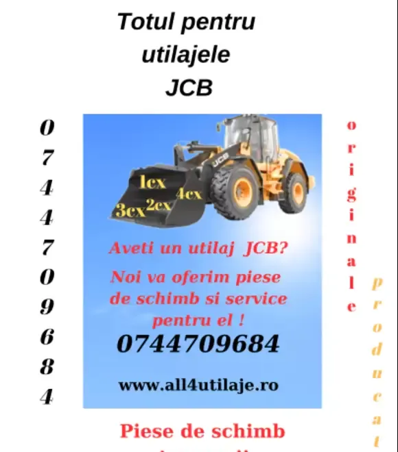 Va invit sa rasfoiti postarile mele si cu siguranta veti vedea piesa de care aveti nevoie pentru utilajul dumneavoastra JCB Suntem depozit de piese de schimb accesorii si consumabile pentru buldoexcavatoarele JCB si avem in stoc piese originale jcb dar si pe producator care se ridica la cele mai inalte standarde de calitate fiind minutios selectate din vasta oferta de piese de pe piata Daca aveti nevoie de piese sunati cu incredere si impreuna gasim cele mai bune solutii pentru utilajele dumneavoastra Contactati-ma Telefon 0744 709 684 Whatsapp 0744 709 684 pretul este informativ