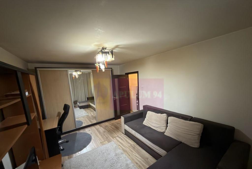 Apartament 1 camera confort 1 decomandat suprafata totala 40 42 mp zona Buzaului foarte aproape de spitalul Judetean etaj 4 fara probleme cu hidroizolatia centrala termica izolatie termica la exterior tamplarie exterioara PVC-termopan rulouri exterioare aluminiu la fereastra livingului usi interioare schimbate cu tamplarie din aluminiu faianta gresie parchet Mobilierul frigiderul plita de aragaz si cuptorul cu microunde raman bonus Acte la zi Id intern P204562