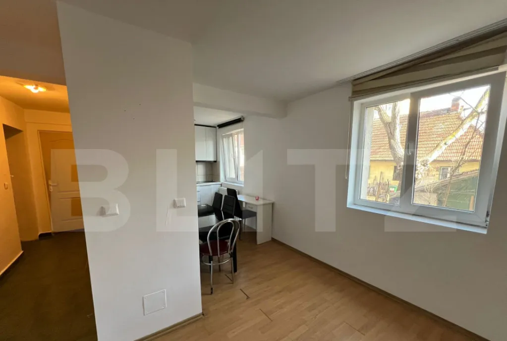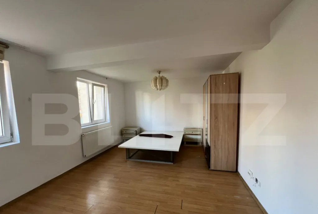 cameră spațioasă, ușor de amenajat în zonă de living și dormit