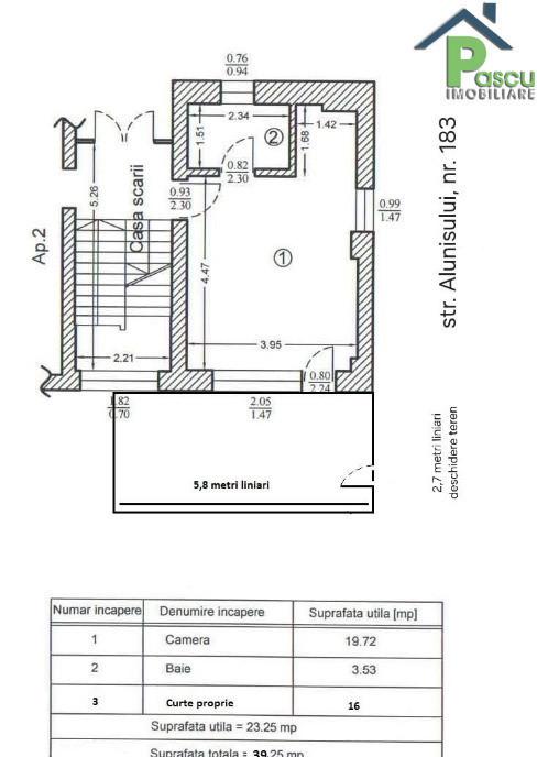 Exclusivitate PASCU Imobiliare Blocul este situat stradal pe strada Alunisului cu acces din bulevardul Constantin Brancoveanu sau soseaua Giurgiului este finalizat in anul 2015 are un regim de inaltime P 3 structura de rezistenta pe cadre si plansee din beton armat compartimentare cu caramida Porotherm izolatie termica cu polistiren expandat 10 cm EPS 80 Garsoniera se afla la parter are expunere stradala si curte proprie in suprafata de 16 metri patrati cu acces direct din strada facand-o ideala atat pentru locuit dar mai ales pentru desfasurarea unei activitati comerciale sau spatii birouri Garsoniera dispune de imbunatatiri premium centrala termica proprie incalzire prin pardoseala aparat de aer conditionat LG ArtCool Gallery sistem de alarma si supraveghere video Bucataria este mobilata la comanda dotata cu plita electrica si hota frigider si multiple spatii de depozitare Baia dispune de geam mare pentru aerisire cabina de dus cu paravan din sticla baterii Kludi vas de WC si rezervor incastrat Grohe Usa metalica la intrare anti efractie gresie portelanata import Italia usi interioare premium Garsoniera este proaspat igienizata si zugravita libera disponibila imediat