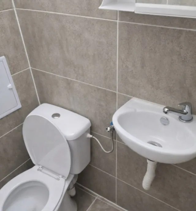 * baie complet refăcută, dotată modern (inclusiv oglinzi noi)
